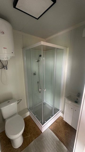 W skład domku wchodzi pokój z aneksem kuchennym oraz łazienka z wc . Zestawienie wielkości pomieszczeń: