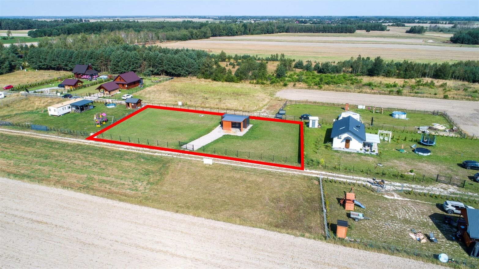 DUŻA DZIAŁKA LETNISKOWA Z DOMKIEM, TYLKO 8 MINUT SPACEREM DO PLAŻY !Letniskowy domek kontenerowy , o powierzchni ok. 18,7 m2 usytuowany na zadbanej działce, o powierzchni 1488 m2 . Przed domem zadaszony taras, o powierzchni ok. 16 m2, ścieżka oraz podjazd utwardzony tłuczniem.