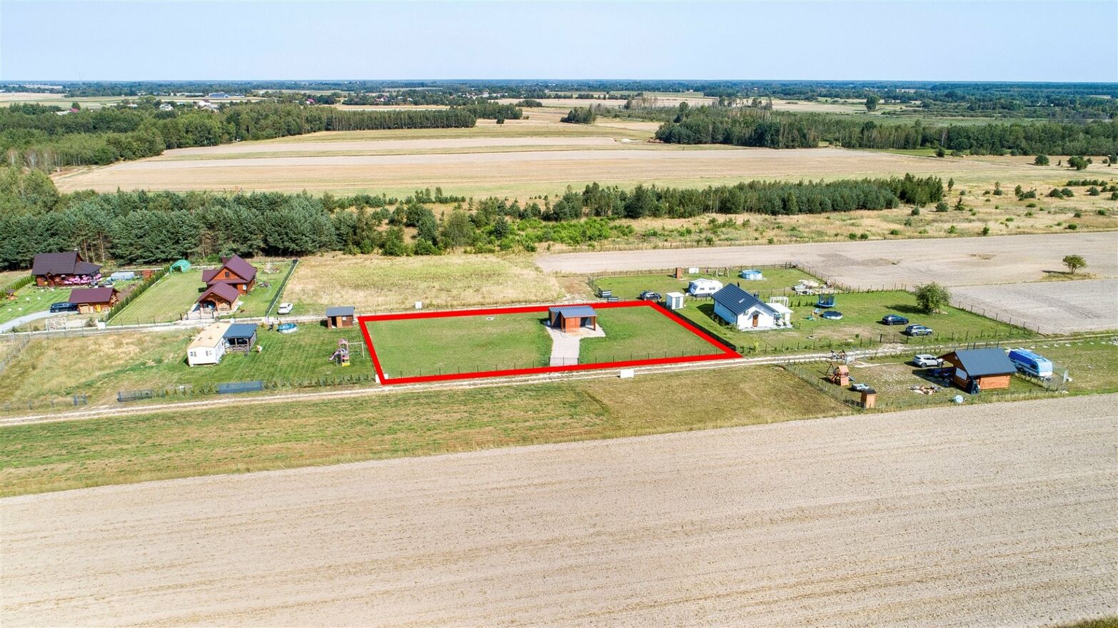 Nieruchomość z dostępem do drogi utwardzonej. Działka sprzedawana wraz z udziałem w drodze wewnętrznej. Teren ogrodzony i obsiany trawą.